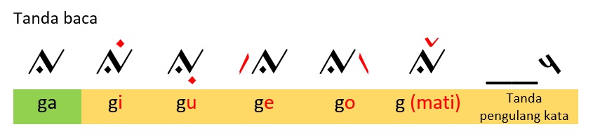 Tanda baca berfungsi seperti harakat pada huruf arab, digunakan untuk mengubah atau menghilangkan vokal bawaan "a".
